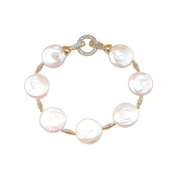 Material: Button baroque pearls, natural zircons, 14K gold vermeil copper
