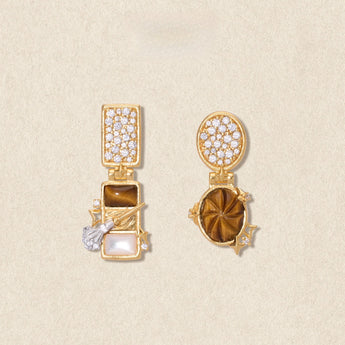 Material: Tiger eye stone, mother of pearl, natural zircons, 18K gold vermeil sterling silver.